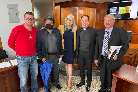 De Izquierda a derecha Jose Antonio Rodriguez, el Papa de Keishla Marlene, el Pastor Ricky Rosado, la Representante Lisie Burgos, el Padre Carlos y Carlos Sanchez.